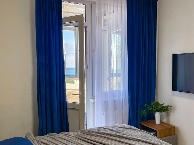 Апартаменты расположены на 4 этаже. Из лоджии открывается вид на море.