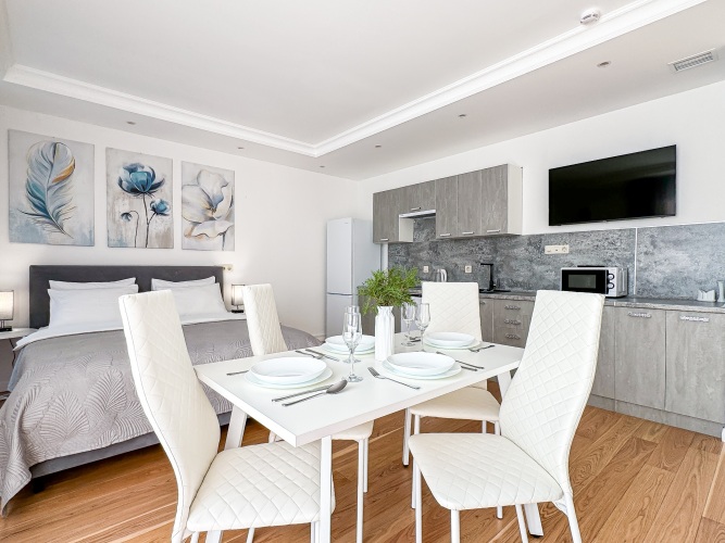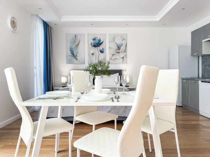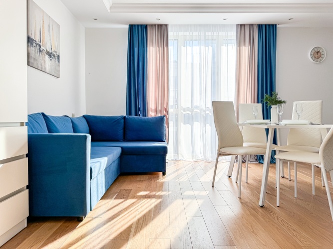 Апартаменты находятся на 6 этаже, в апартаментах нет балкона. Окна выходят во двор. Хотите оставаться на связи? В апартаментах есть бесплатный Wi-Fi. Специально для автопутешественников организована бесплатная парковка. Также для гостей в апартаментах: массажный кабинет и спа-центр. Удобно для гостей с ограниченными возможностями: на верхние этажи гостей поднимает лифт.