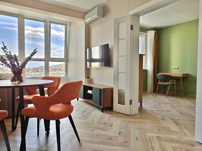 В номере вы найдёте телевизор. Оснащение зависит от выбранной категории номера.