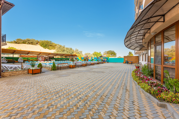 Гостям отель предлагает питание в гостиничной столовой. В распоряжении гостей открытая охраняемая парковка при отеле, отдыхающим на всей территории доступны услуги прачечной и сеть wi-fi. Для юных туристов оборудована небольшая детская площадка. Городской пляж находится в 400 метрах от дверей отеля. На песчаном пляже имеются кабинки для переодевания, навесы, шезлонги, есть детские надувные аттракционы.