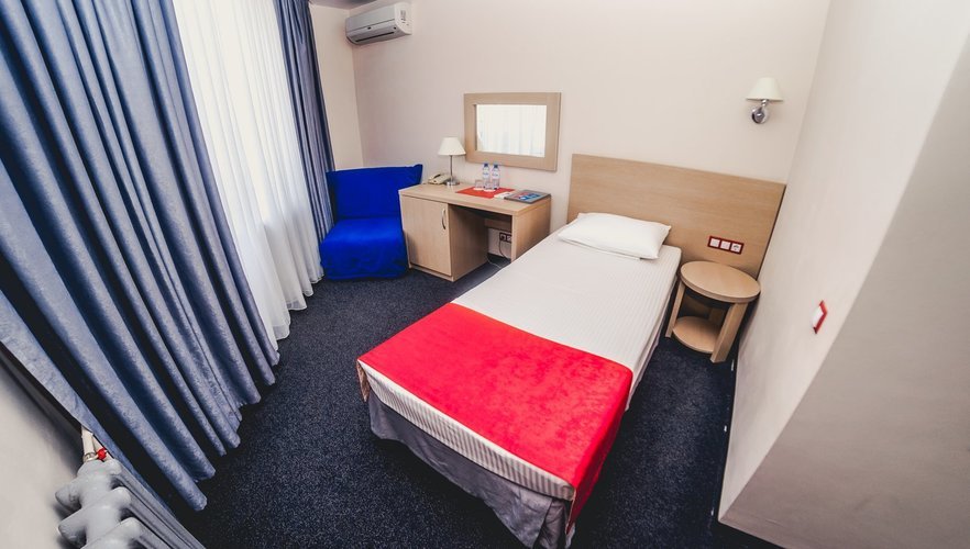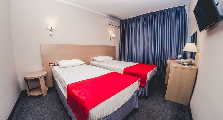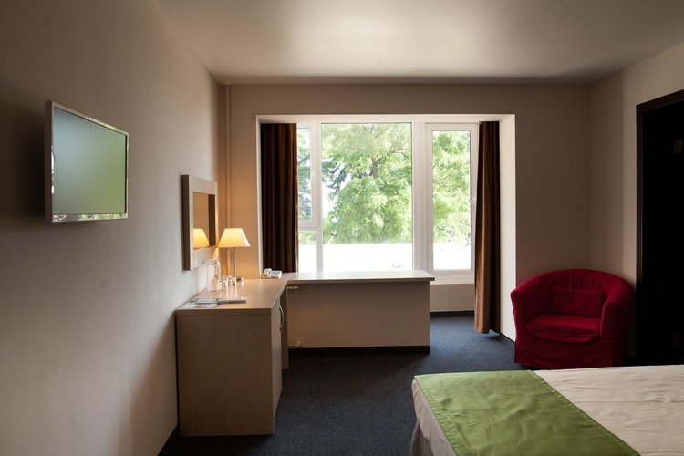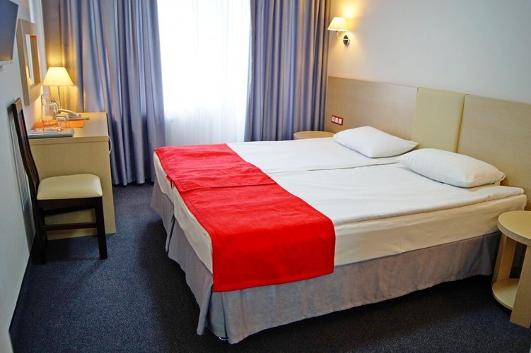 Отель находится в центре города на набережной. Высотное здание из 13 этажей. В отеле несколько категорий номеров: одноместный стандарт, двухместный стандарт, двухместный улучшенный стандарт, студия, люкс 2-х комнатный.