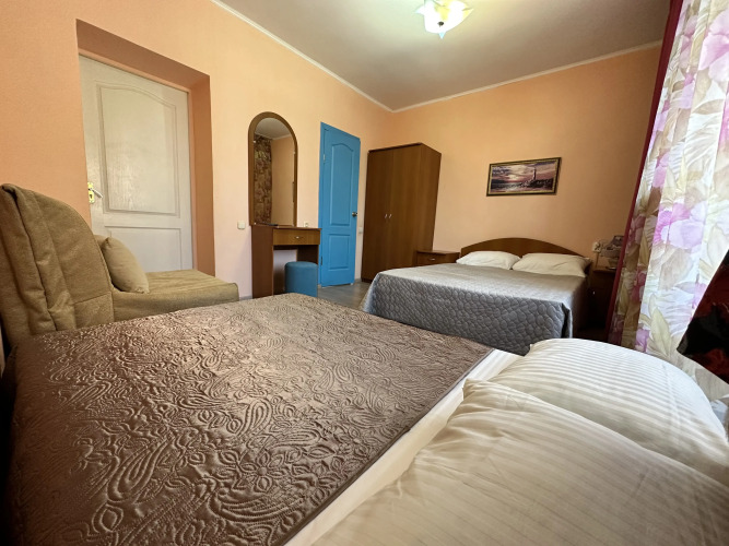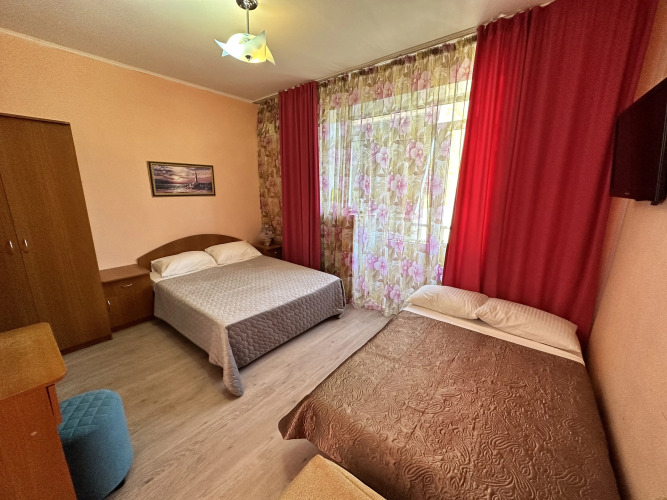 В номере вы найдёте телевизор. Оснащение зависит от выбранной категории номера.