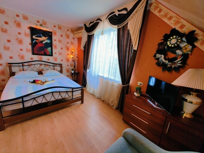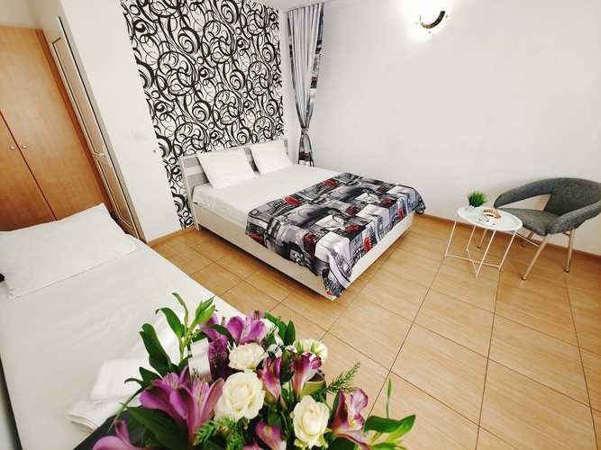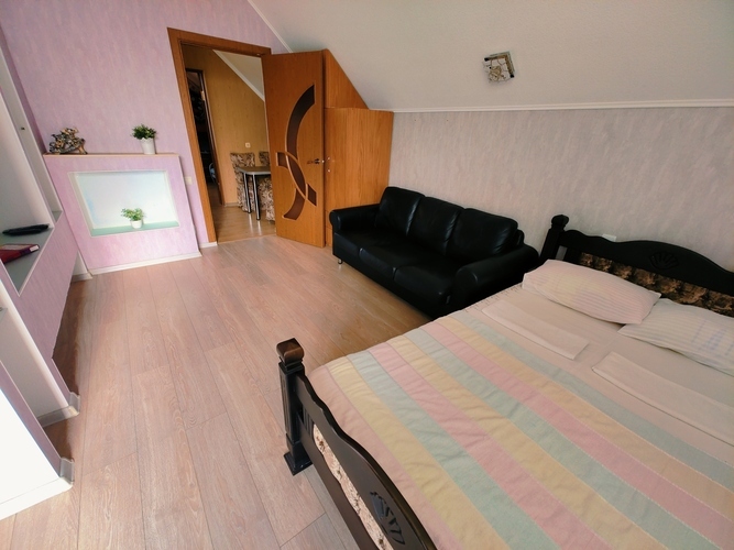 Идеальный вариант для отдыха с семьи или небольшой компании до 10 человек. В апартаментах выполнен свежий ремонт. Есть все необходимое для комфортного и приятного проживания. Апартаменты занимают весь этаж, так же имеют собственную мини-кухню. Большая отдельная терраса. Чувствуйте себя как дома!