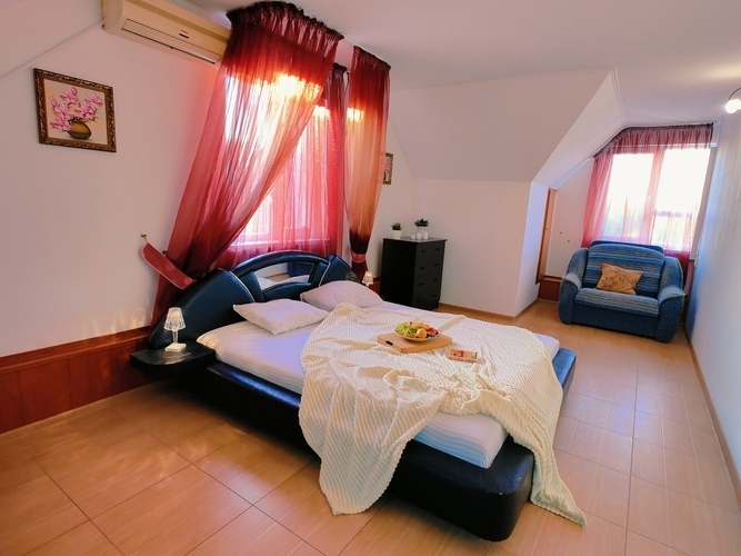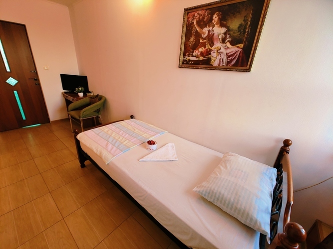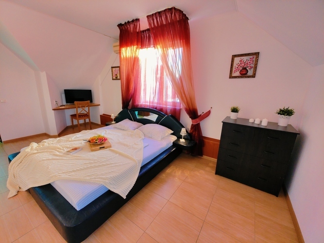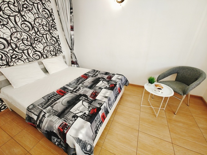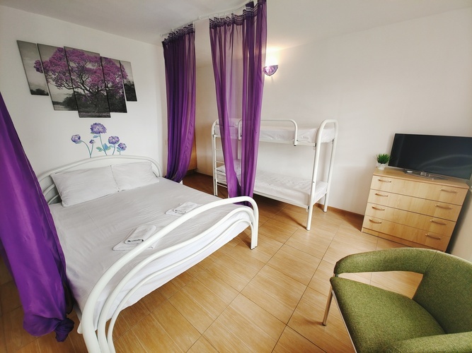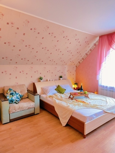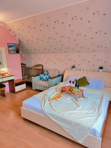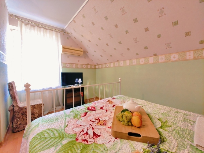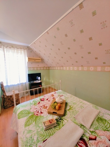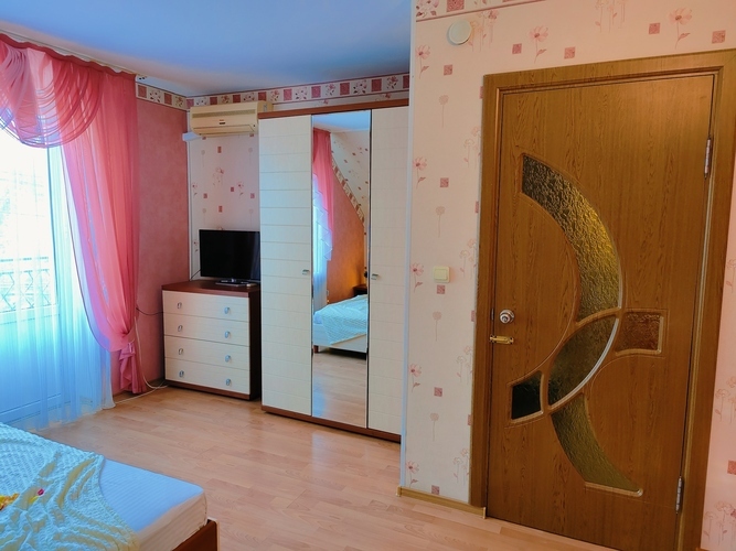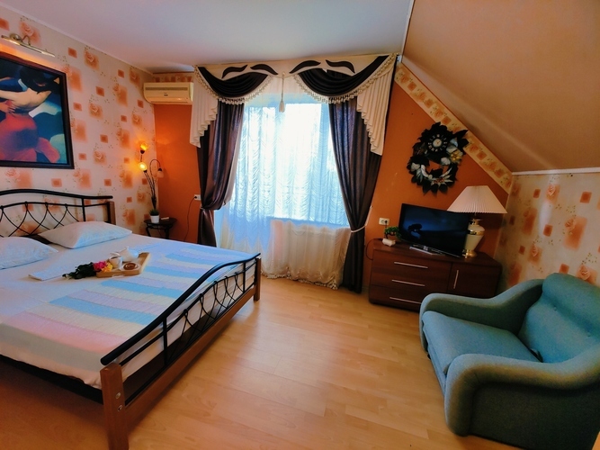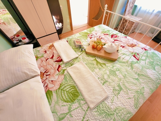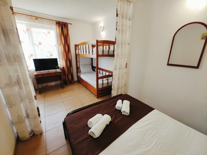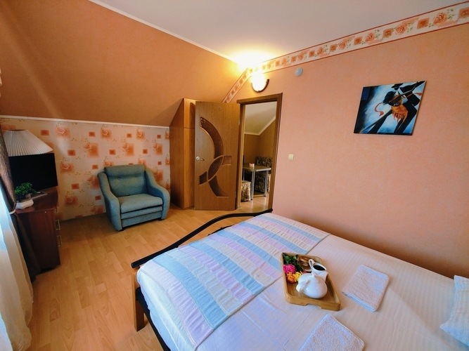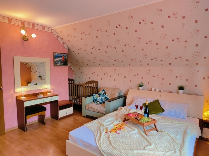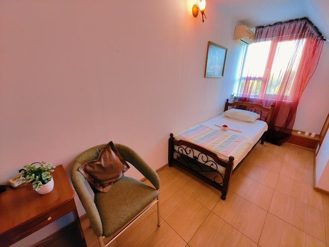Просторный, уютный номер с двуспальной кроватью, двуярусной кроватью, шкафом, телевизором, сплит-системой. В номере имеется собственная ванная комната.
