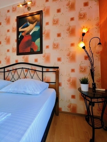 Комфортный, уютный номер. В номере телевизор, сплит-система, двуспальная кровать, прикроватная тумбочка, шкаф. В номере имеется собственная ванная комната. Номер без балкона.