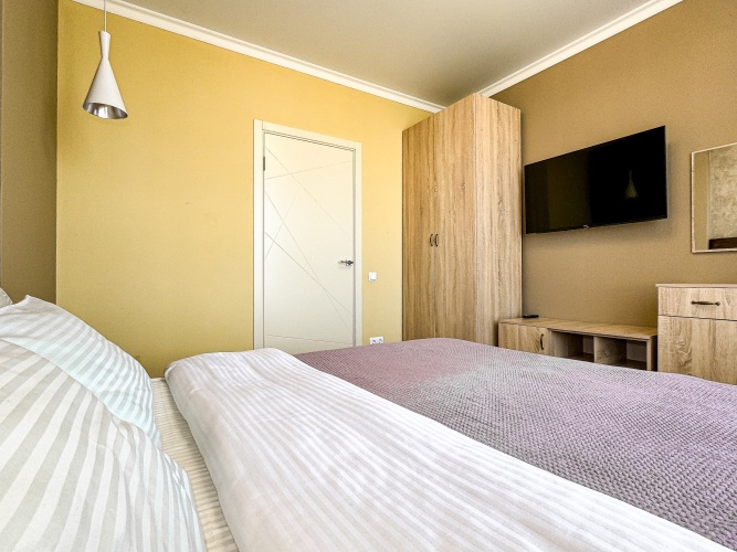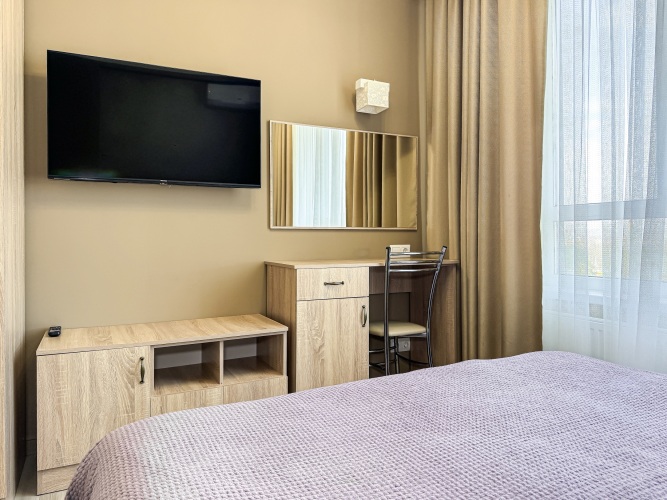 В номере вы найдёте телевизор. Оснащение зависит от выбранной категории номера.