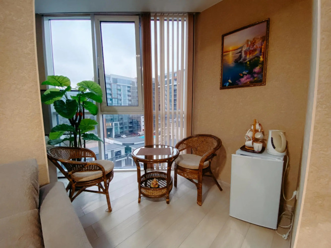 Апартаменты на 1-ой линии, адрес на карте Анапа, проезд Золотой Берег, д. 2в, с описанием номеров и возможностью онлайн бронирования на сайте ВашОтель.RU , стоимость проживания и удобства.
