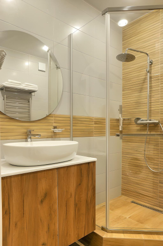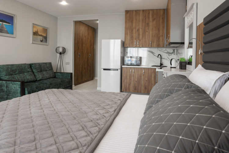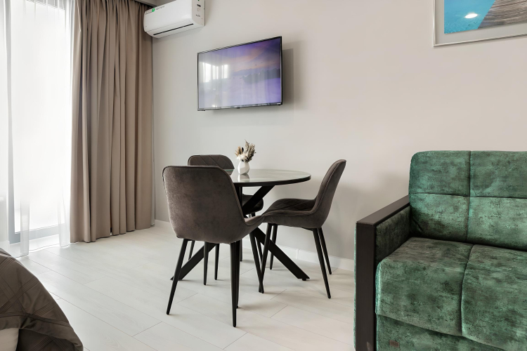 Чтобы вы могли отдохнуть после долгого дня, в номере есть телевизор и халат. Оснащение зависит от выбранной категории номера.