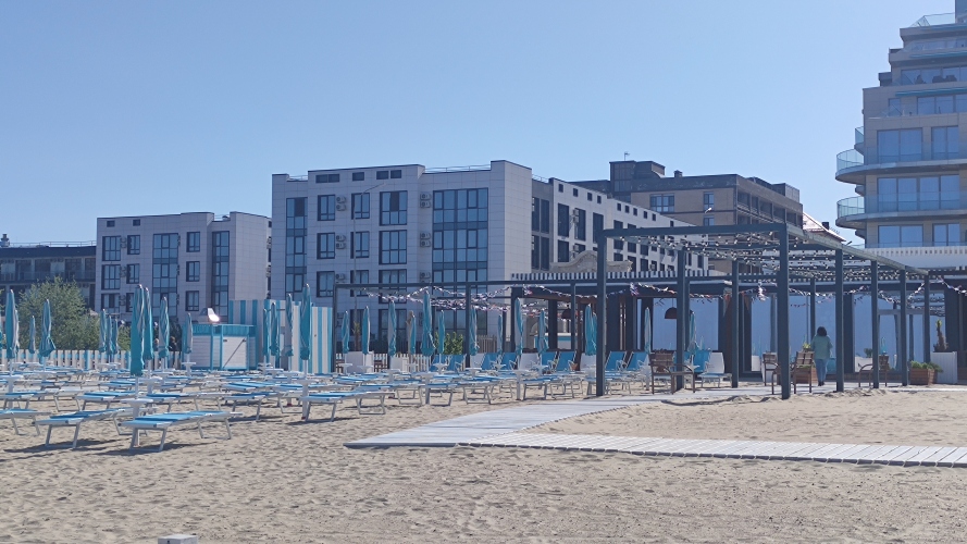 У апартаментов свой собственный пляж с лежаками. Входит в стоимость бронирования.