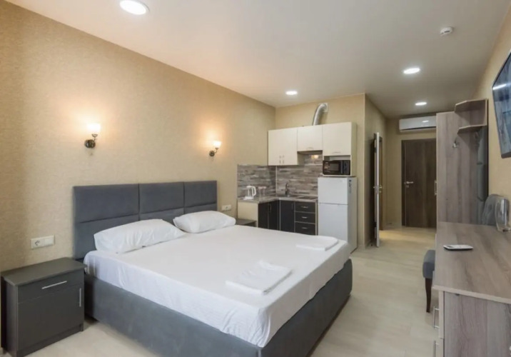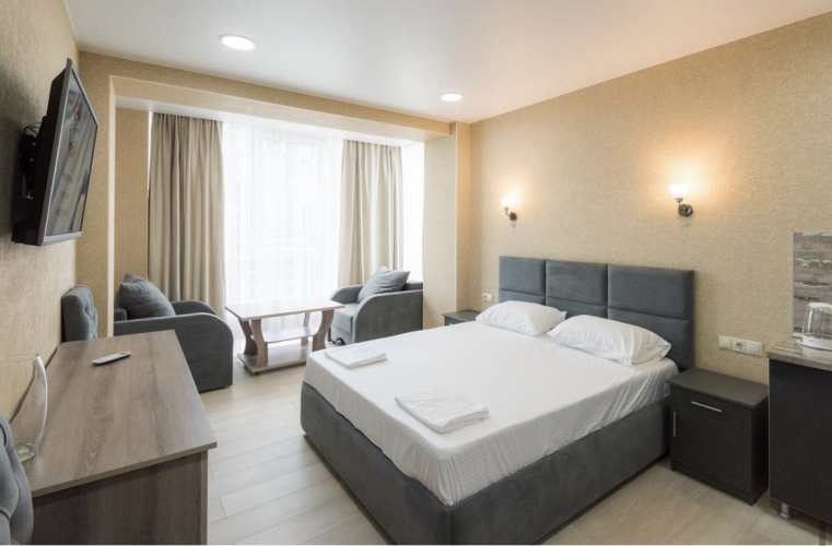 Чтобы вы могли отдохнуть после долгого дня, в номере есть телевизор и халат. Оснащение зависит от выбранной категории номера.