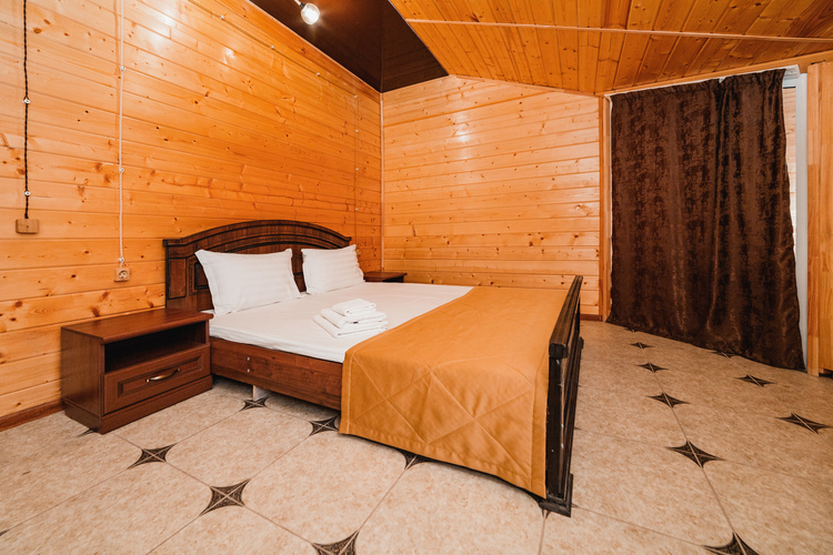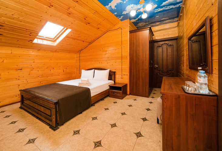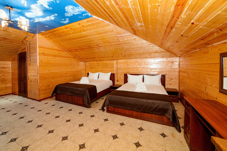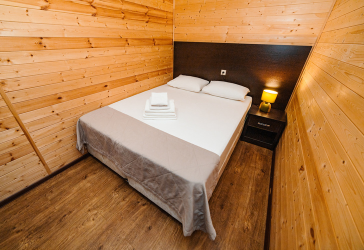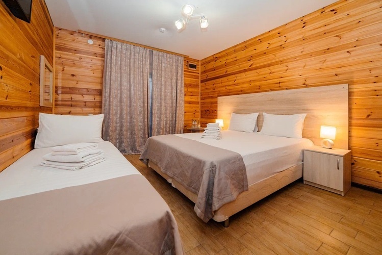 Уютный двухкомнатный номер из экологически чистых материалов расположен на втором этаже эко-корпуса. В номере находятся одна двуспальная и две односпальные кровати. Номер оборудован всем необходимым для полноценного и комфортного отдыха. В номере есть холодильник, кондиционер, телевизор, Wi-Fi. В ванной комнате - душ, унитаз, зеркало, фен, полотенца, туалетные и косметические принадлежности. Отличный вариант отдыха как для большой семьи, так и для отдыха в кругу друзей.