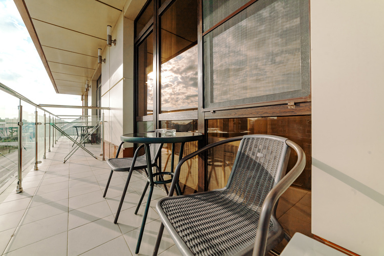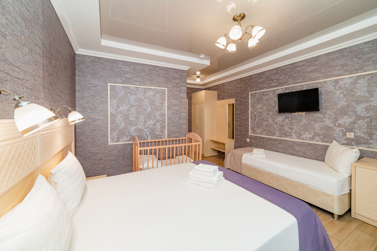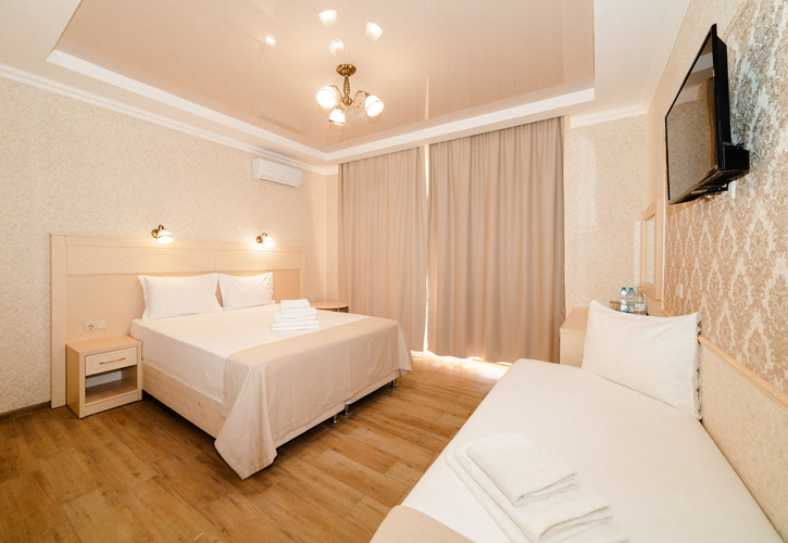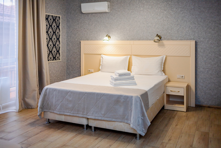 Уютные однокомнатные номера с балконом и современным дизайном расположены на втором, третьем и четвертом этажах основного корпуса. Возможно размещение как на одной двуспальной, так и на трех односпальных кроватях. Номера оборудованы всем необходимым для полноценного и комфортного отдыха. В номере есть мини-холодильник, телевизор, кондиционер, Wi-Fi. В ванной комнате есть душ, зеркало, фен, полотенца, туалетные и косметические принадлежности.