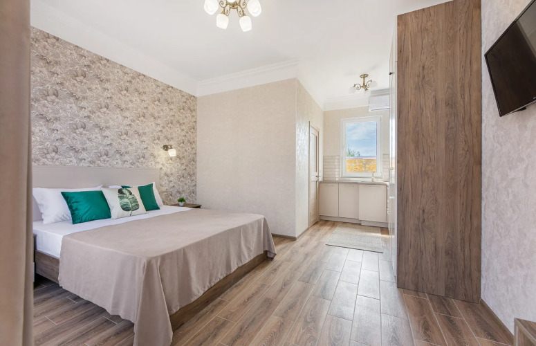 Чтобы гости могли отдохнуть после долгого дня, в номере есть телевизор.