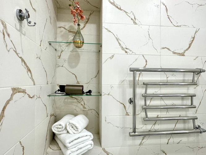 В номере вы найдёте телевизор и халат. Оснащение зависит от выбранной категории номера.