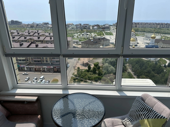 Апартаменты du Soleil в ЖК Горизонт с Видом на Море, адрес на карте Анапа, улица Ленина, д. 173А корп. 2, с описанием номеров и доступностью онлайн бронирования на сайте ВашОтель.RU , цены проживания и удобства.