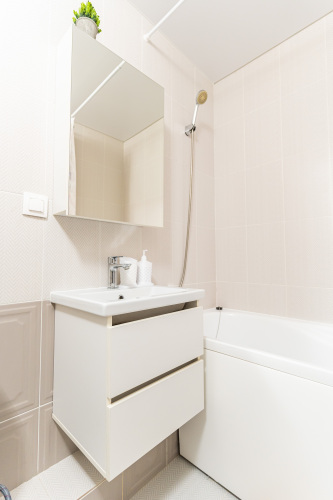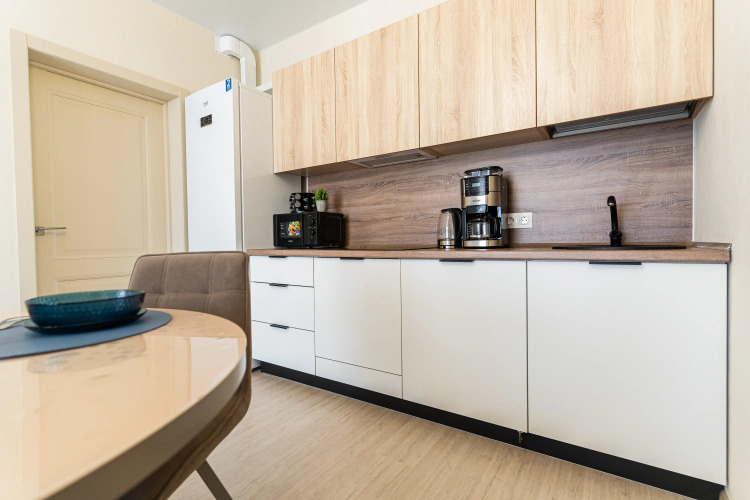 В апартаментах могут разместиться до 6 человек. В наличии Wi-Fi, телевизор Smart TV, холодильник, стиральная машина, тёплые полы, водонагреватель, фен, утюг, микроволновка, плита. Предоставляются постельное бельё, полотенца, ванные принадлежности, кофе и чай.