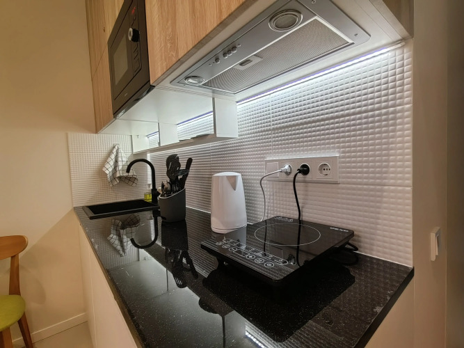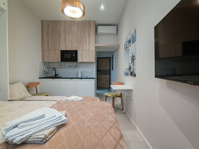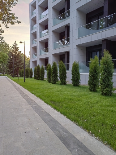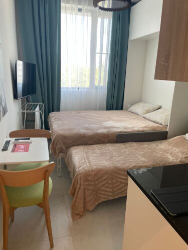 Территория апарт-комплекса представляет собой парковую зону. Апартаменты оснащены бытовой техникой и мебелью. На территории работает бесплатный Wi-Fi. Для путешественников на машине организована парковка. Удобно для гостей с ограниченными возможностями: на верхние этажи гостей поднимает лифт.