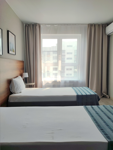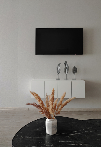 В распоряжении гостей есть: две сплит системы, кухня со встроенной техникой, микроволновая печь и духовой шкаф, посудомоечная машина, система фильтрации воды для питья, обеденная зона, кровати, смарт ТВ,многоканальное телевидение, телевизор, лоджия с зоной отдыха, шторы blackout, полноценная ванная, рабочий и туалетный столики, бельё и полотенца, гигиенические средства.