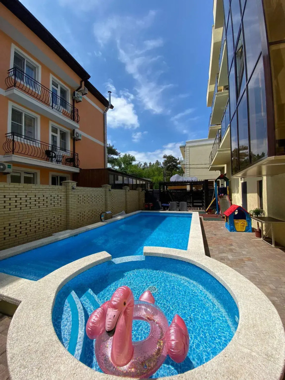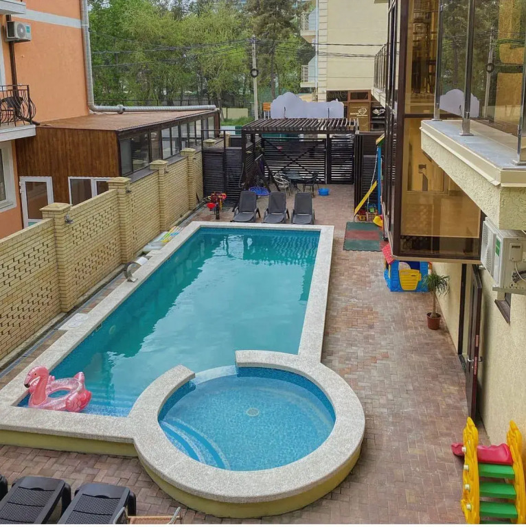 Предоставляется детская кроватка бесплатно для детей до 3-х лет. Два раза в неделю в период 1.06-30.09 проводится анимация для детей. Во дворе отеля есть качели, горка и принадлежности для игр.
