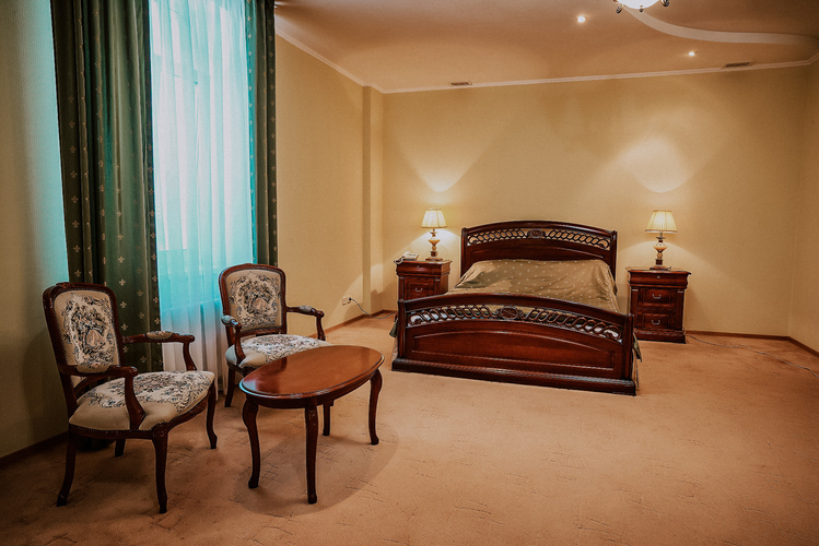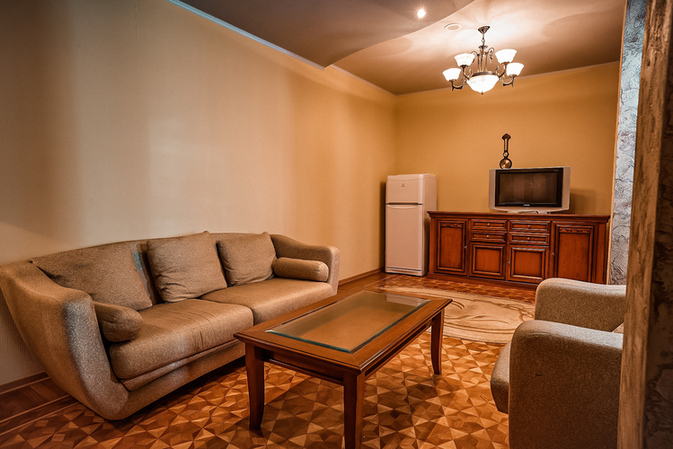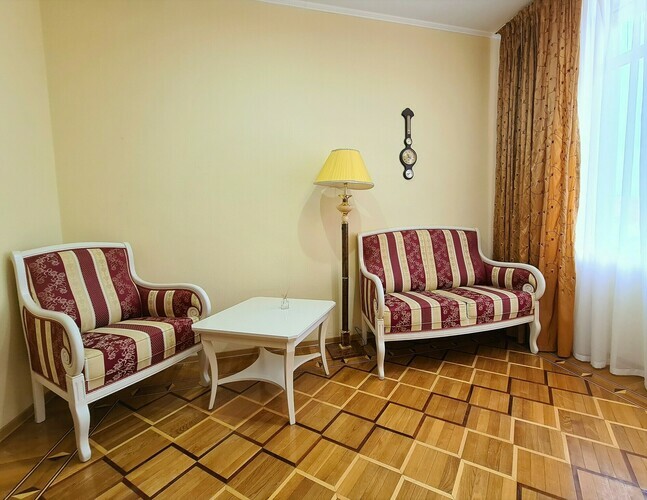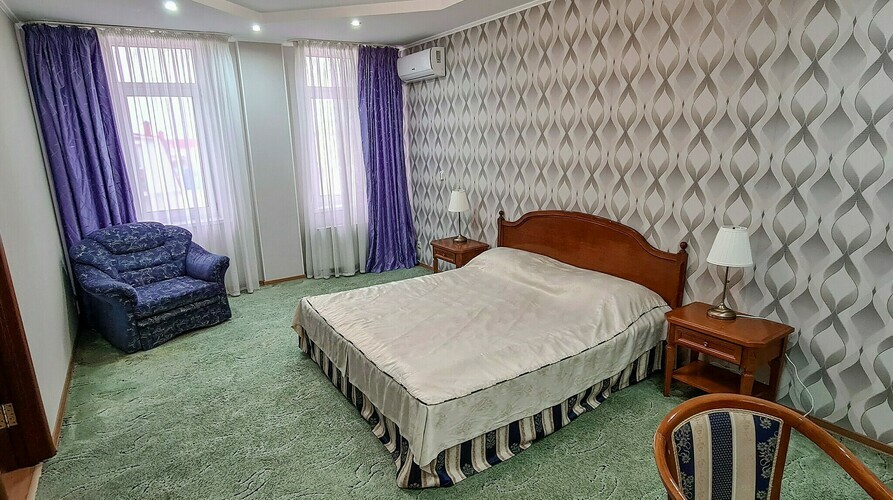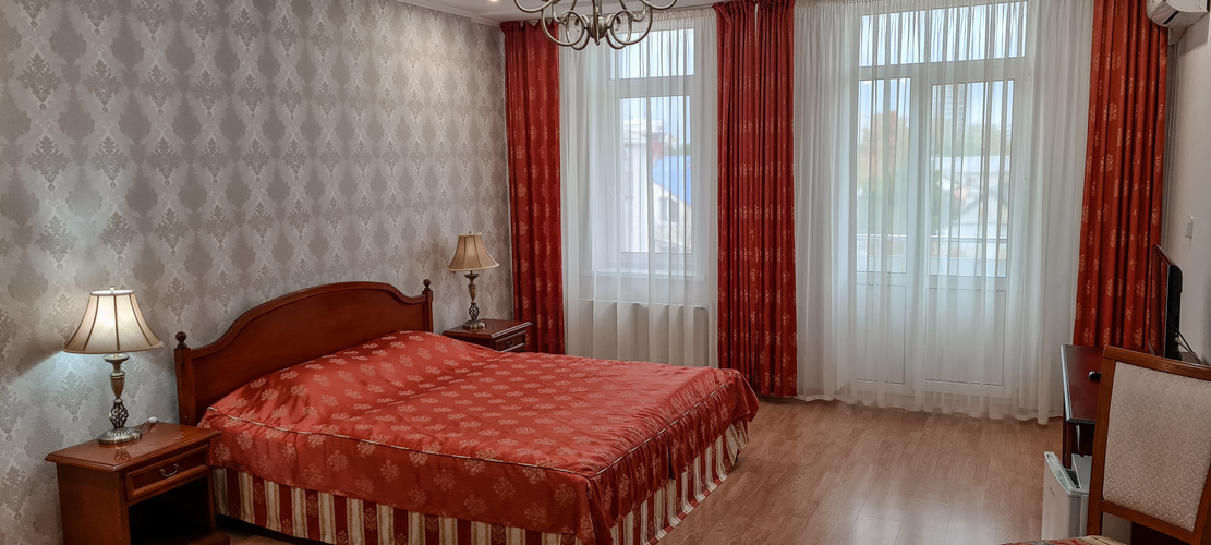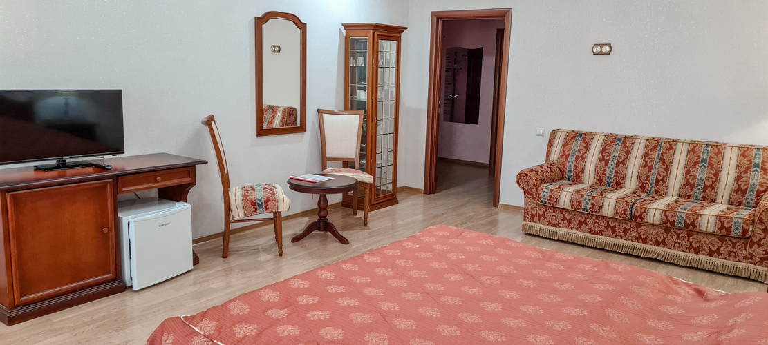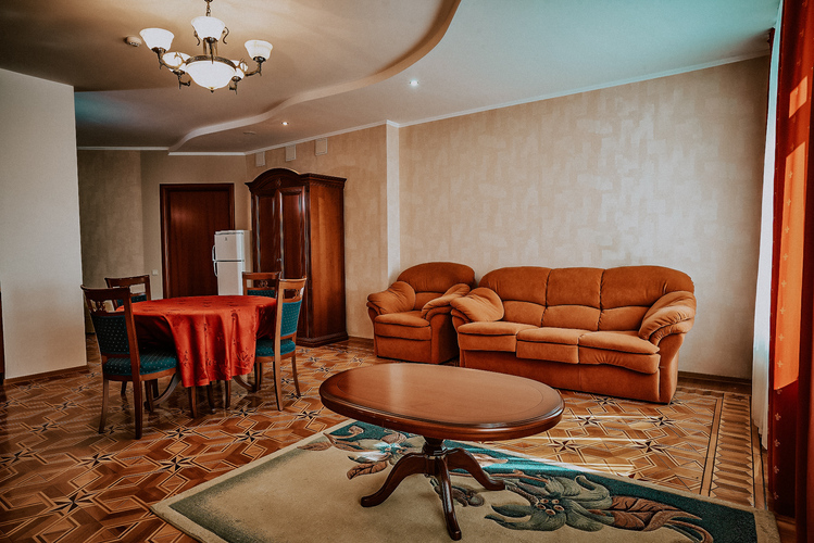 Вместительные двухкомнатные номера, адресованные ценителям роскоши и изысканности. В номерах гостей ждет презентабельная мягкая мебель, новая техника и предметы гостиничного быта.