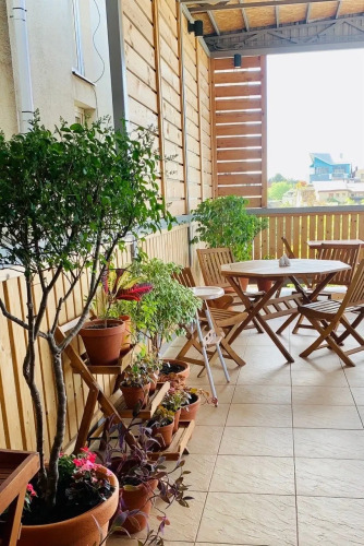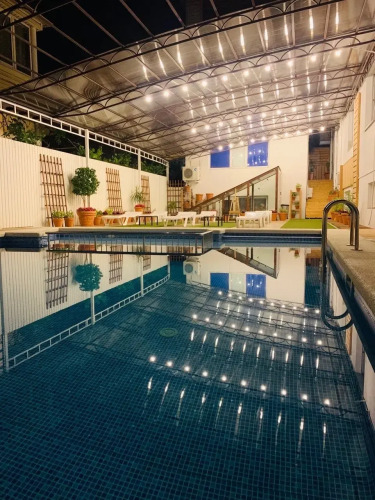 К услугам гостей подаются завтраки на веранде. Данная услуга предоставляется с 1 мая по 1 октября 2024 года. На территории отеля есть декоративные растения, цветы, кустарники и деревья. Гости смогут отдохнуть у бассейна, а для детей в воде установлены защитные ограждения. Также для гостей работает сауна с комнатой отдыха и отдельным бассейном.
