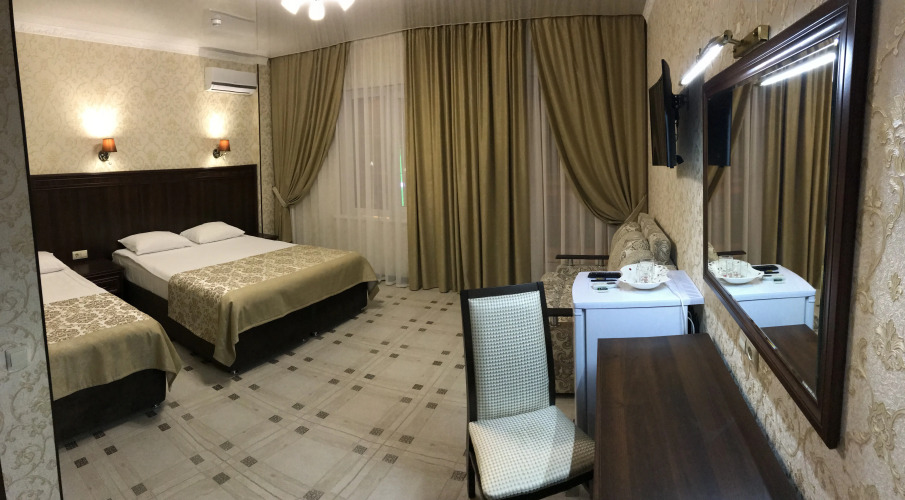 Чтобы вы могли отдохнуть после долгого дня, в номере есть телевизор. Оснащение зависит от выбранной категории номера.
