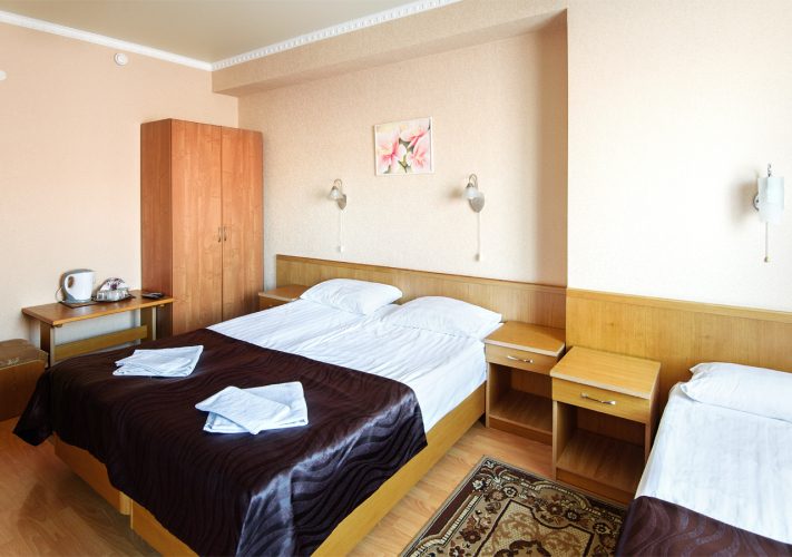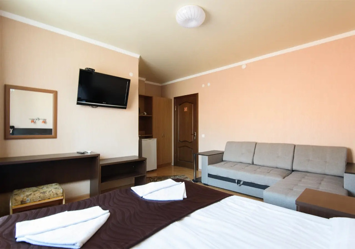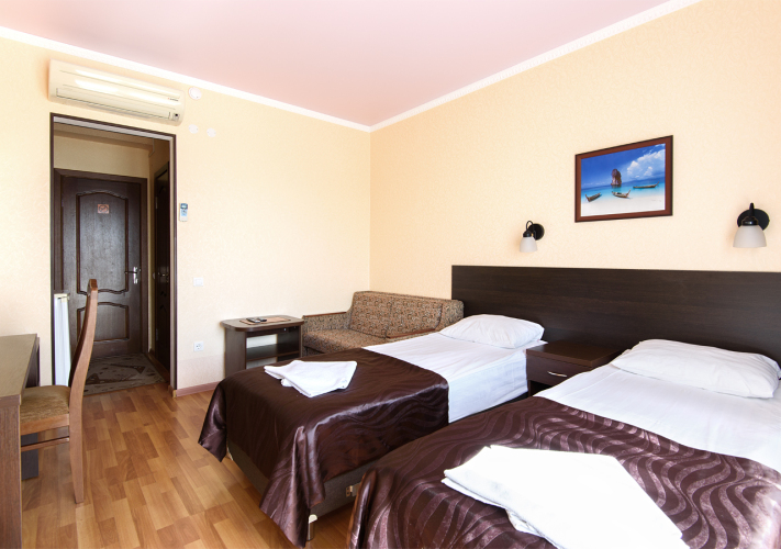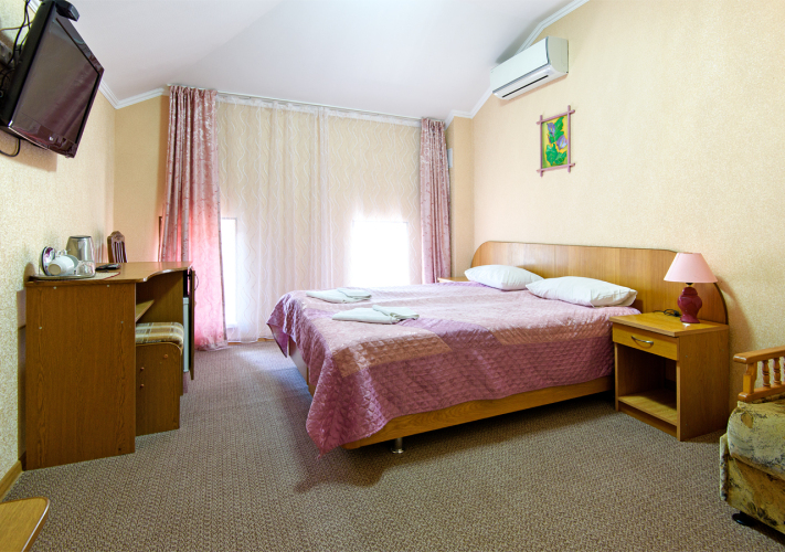 В гостевом доме «Патио» к услугам гостей 2-х, 3-х и 4-местные однокомнатные номера «Стандарт» и два двухкомнатных номера класса «Люкс». Все номера оборудованы телевизором, холодильником, сплит-системой, сейфом, феном, доступом в интернет (Wi-Fi). В тёплое время года можно воспользоваться летней кухней.