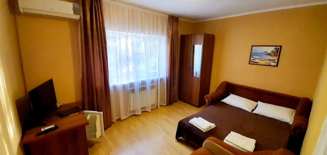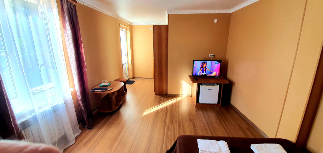 Номер уютно обставлен и оснащён необходимым, чтобы отдохнуть после долгого и насыщенного дня. Имеются телевизор. Перечисленные услуги есть не во всех номерах.