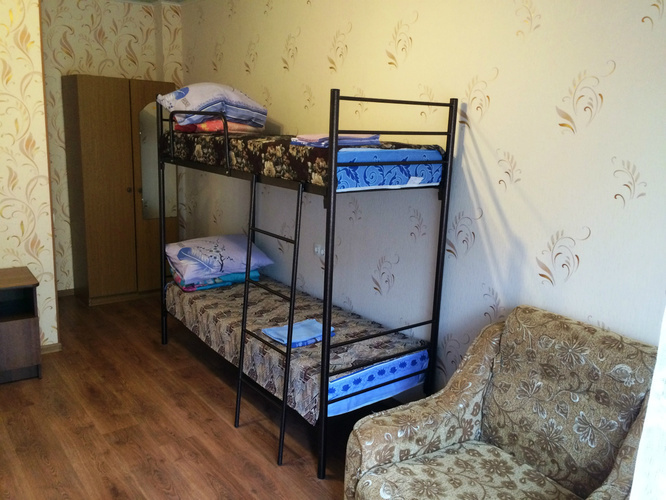 1 большая двуспальная кровать, 1 двухъярусная кровать, 1 кресло-кровать или 2 односпальные кровати, 1 двухъярусная кровать, 1 кресло-кровать