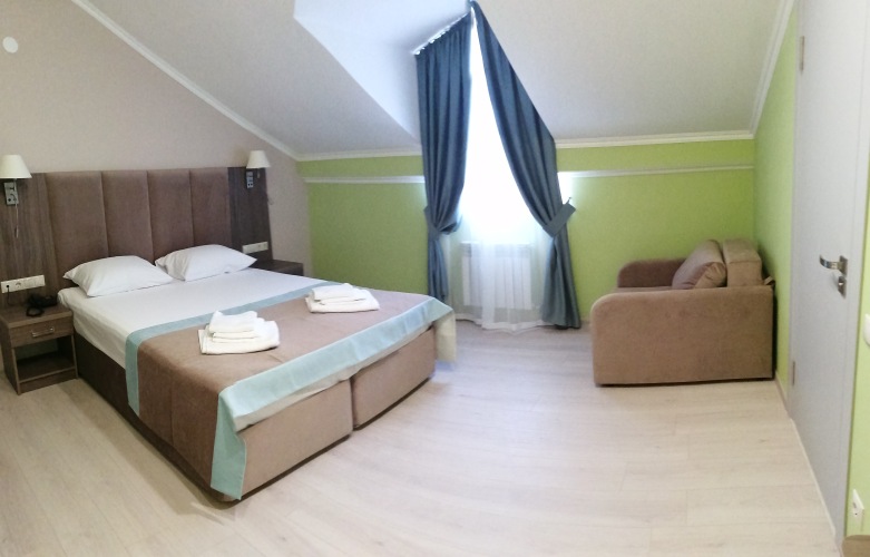 Номер уютно обставлен и оснащён необходимым, чтобы отдохнуть после долгого и насыщенного дня. Имеются телевизор, холодильник, кондиционер, чайный набор, фен, сушилка для белья.