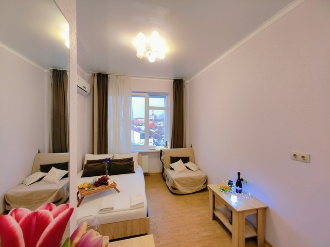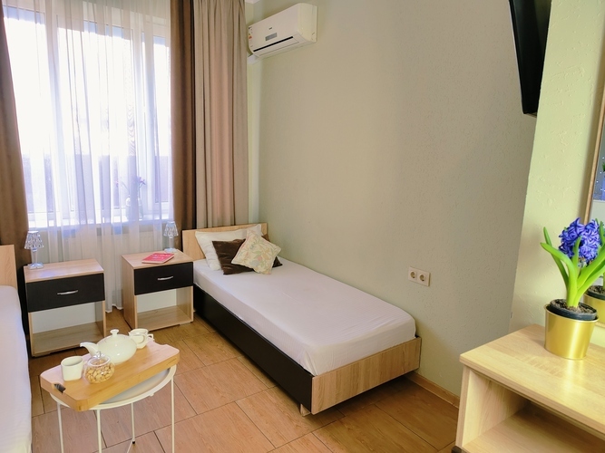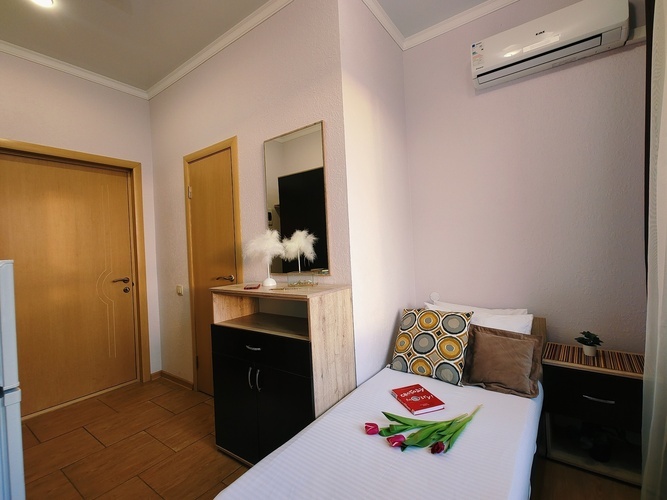 Откройте для себя уютный уголок комфорта в самом сердце Черноморского побережья — Гостиницу Центральная в Анапе. Расположенная в самом центре города, всего в нескольких шагах от автовокзала, наша гостиница предлагает идеальное место для тех, кто ищет удобство в перемещении и близость к лучшим развлечениям и достопримечательностям. Вам не придется далеко ходить, чтобы насладиться живописным пляжем — всего 400 метров отделяют вас от галечных и золотистых песчаных пляжей Анапы. Находясь в центре всего наилучшего, что может предложить Анапа, наш отель станет вашей идеальной базой для исследования города, будь то дневные экскурсии, пляжный отдых или вечерние приключения. Номера в отеле уютные и светлые оснащены всем необходимым для уютного проживания (кондиционер, бесплатный Wi-Fi, телевизор, мини-холодильник, шкаф, ванная комната). Приглашаем вас в нашу гостиницу удобное расположение, комфортные номера и теплый прием сделают ваш отдых незабываемым.