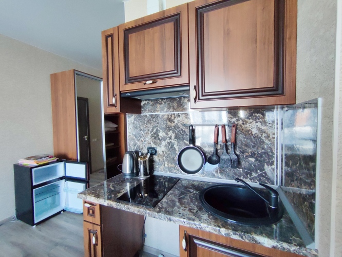 В номере в распоряжении гостей телевизор, кухонная зона, посуда, холодильник и микроволновая печь. Перечисленные услуги есть не во всех номерах.