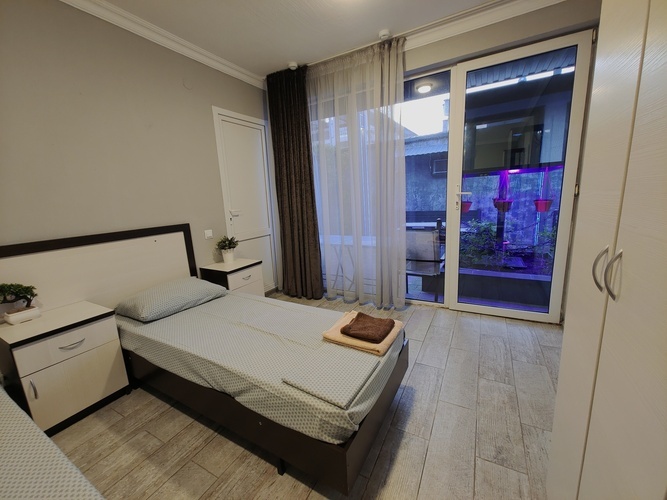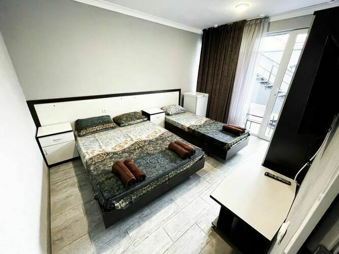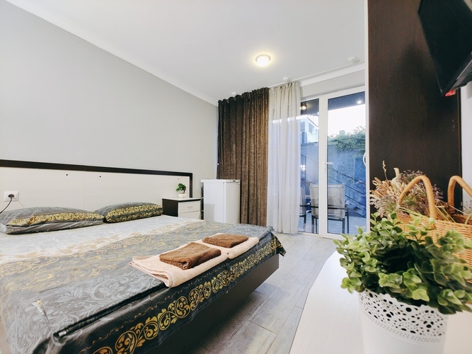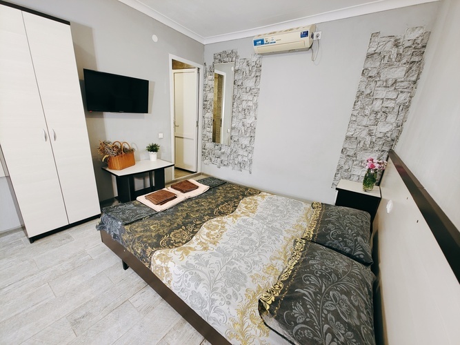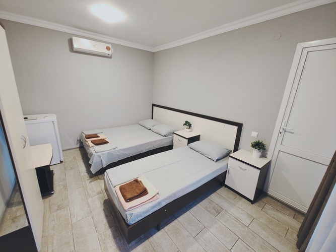 Комфортные, просторные номера создадут уютную атмосферу для вашего отдыха. В номерах есть все необходимое — кондиционер, мини-холодильник, телевизор, санузел с душевой кабиной, беспроводной интернет. На первом этаже гостевого дома предусмотрена общая кухня для самостоятельного приготовления еды, имеется зона отдыха во дворе со столиками, стульями и скамейками для отдыха всей семьей. Для наших гостей на территории работает кафе, с приготовлением блюд на заказ(шашлык, люля-кебаб и другие блюда приготовленные на мангале,) а так же большой ассортимент выпечки и напитков.
