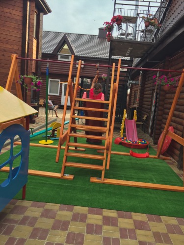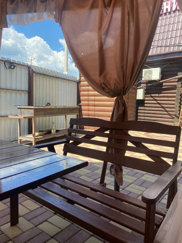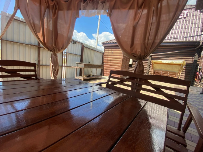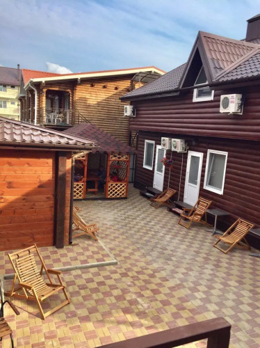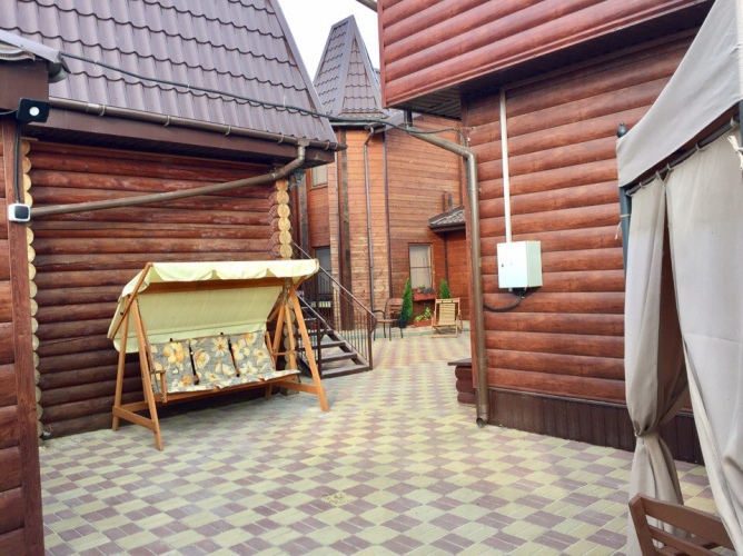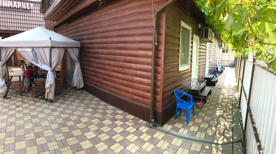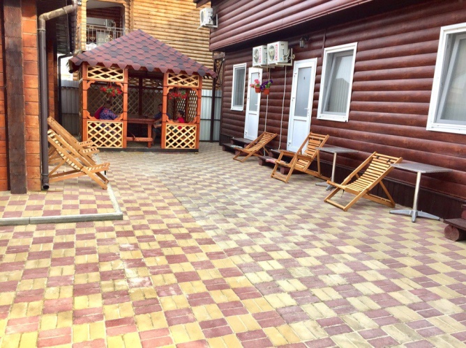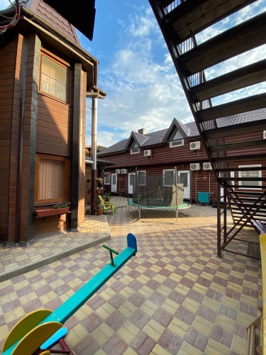 В закрытом дворе обустроена детская площадка, детский бассейн, детский батут. Для взрослых доступны зоны отдыха с беседками. Во дворе имеется мангал, в зоне общего доступа есть лежаки. На территории гостевого дома имеются продуктовый магазин и кафе.
