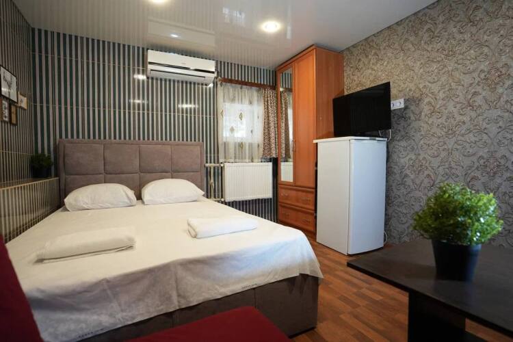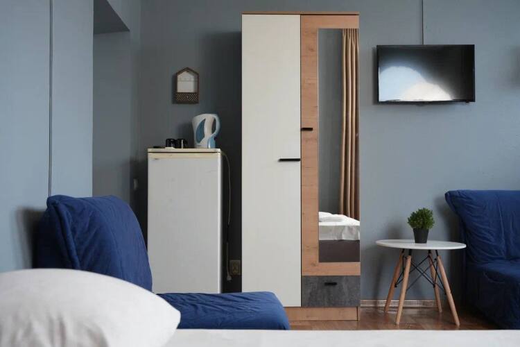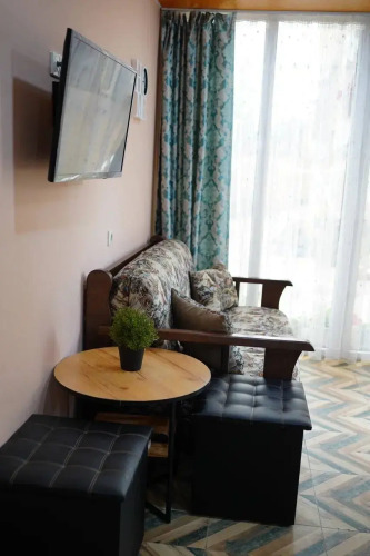 В номере вы найдёте телевизор. Оснащение зависит от выбранной категории номера.