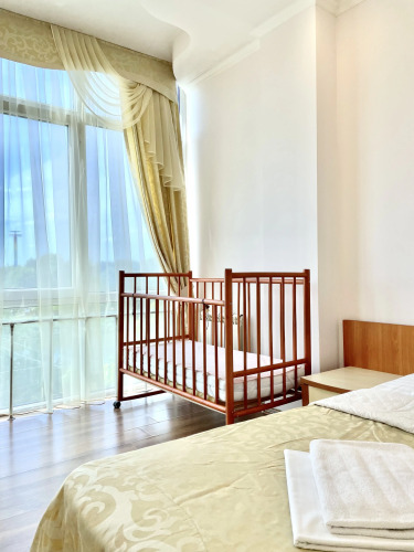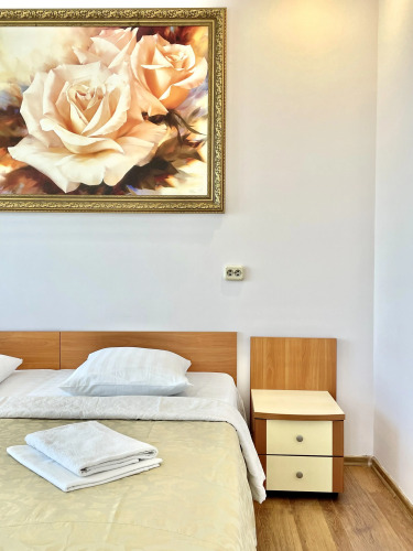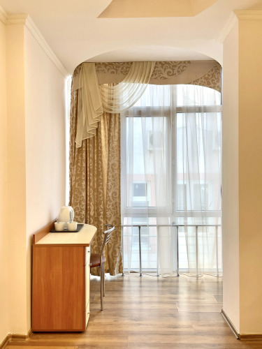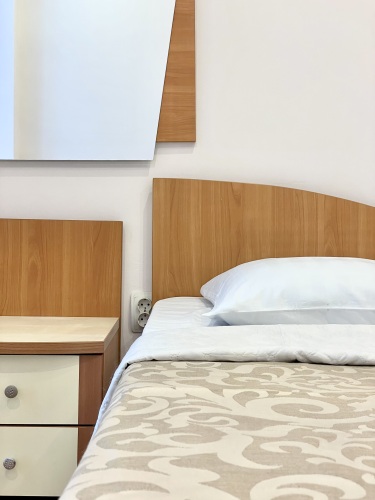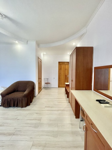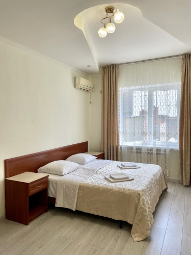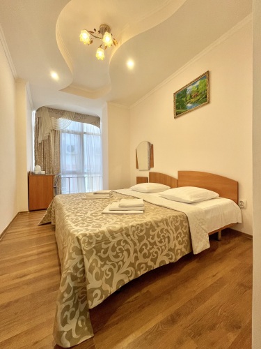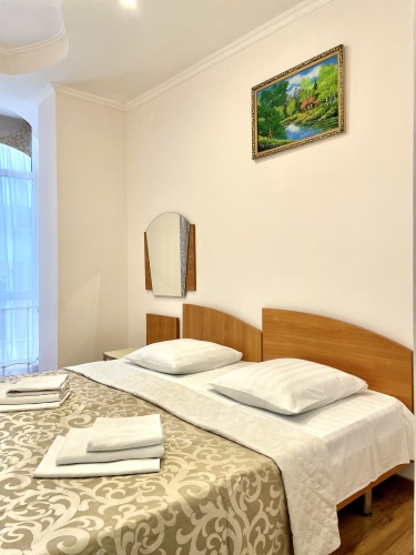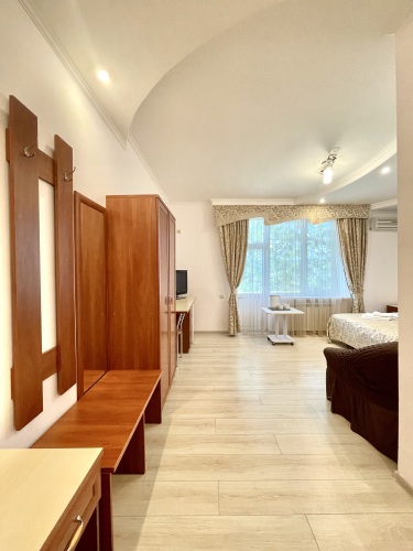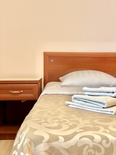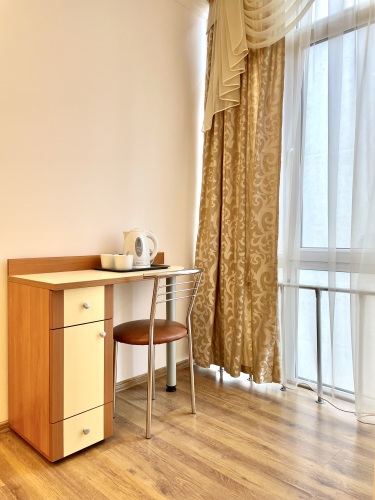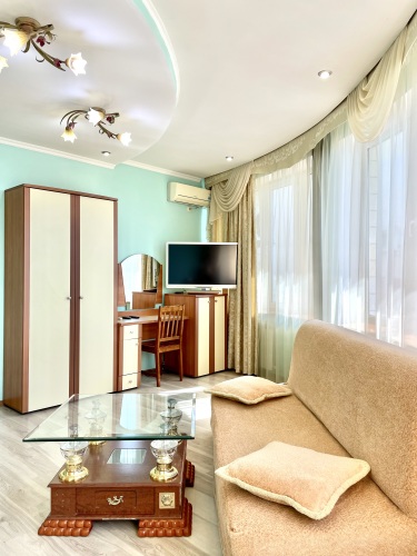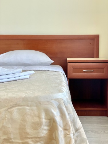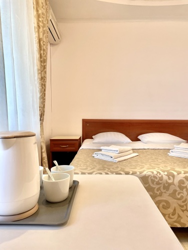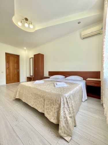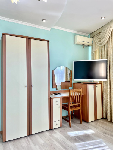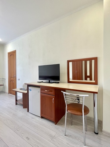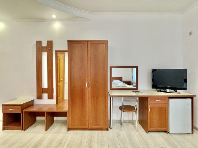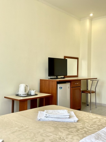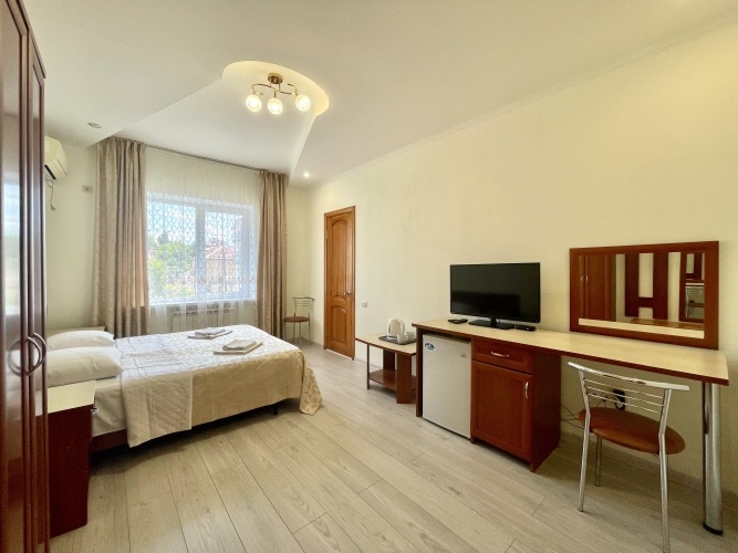 Номер уютно обставлен и оснащён необходимым, чтобы отдохнуть после долгого и насыщенного дня. Имеются телевизор. Оснащение зависит от выбранной категории номера.