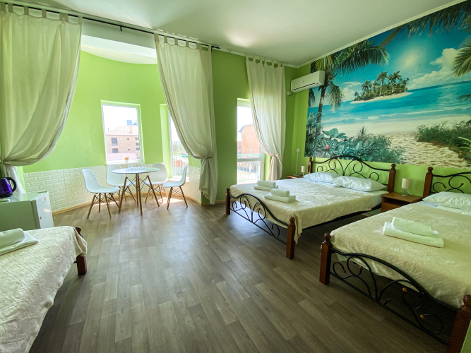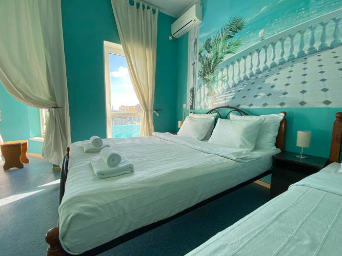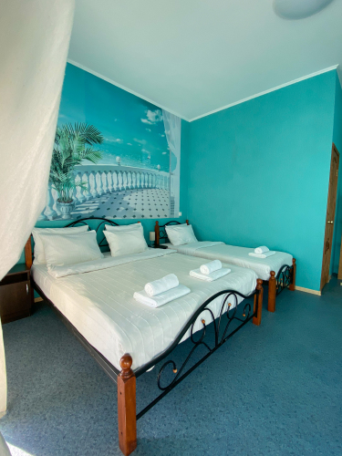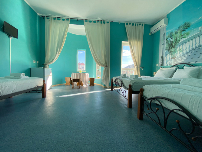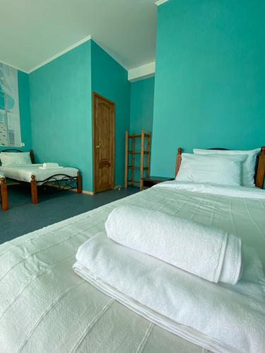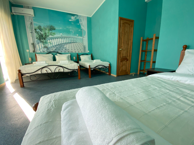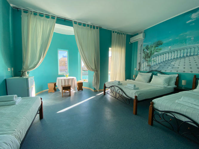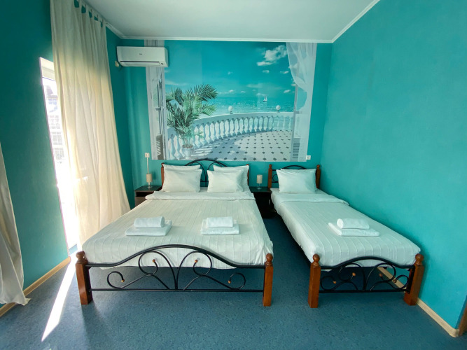 К бронированию доступны номера, которые подходят для размещения от 2 до 4 человек с возможностью предоставления дополнительных мест. Все номера укомплектованы всем необходимым: мебель, телевизор, холодильник, кондиционер, постельные принадлежности и полотенца.