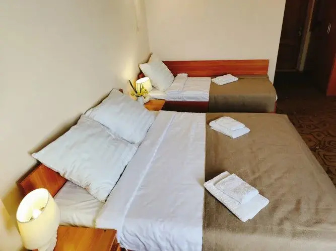 Гостям отеля доступно бесплатное посещение бассейна с отдельными зонами для детей и взрослых. На территории отеля имеется кафе с комплексным питанием.