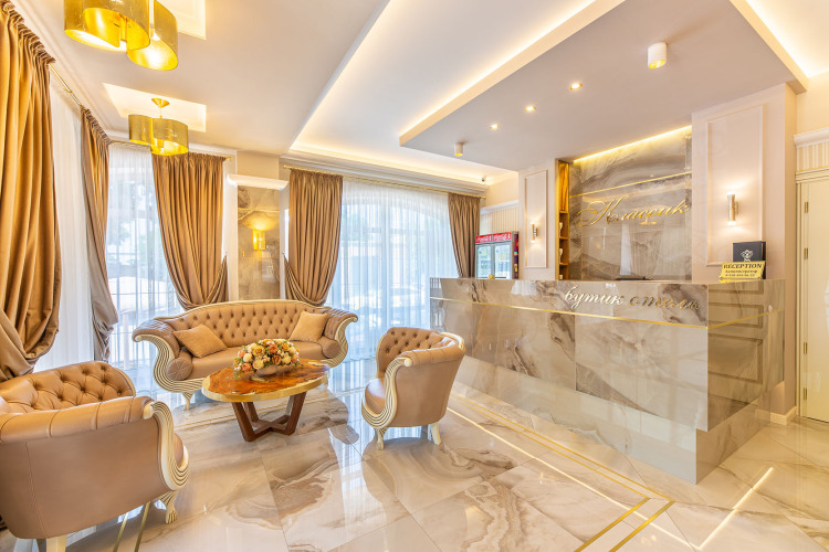 Отель Классик 4 звезды, адрес на карте Анапа, улица Калинина, дом 1В, с описанием номеров и доступностью онлайн бронирования на площадке ВашОтель.RU , стоимость проживания и удобства.