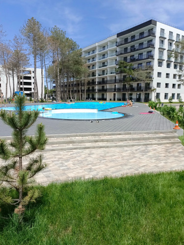В жилом комплексе: закрытая территория, бесключевой доступ, видеонаблюдение — 800 камер в работе, пропускная система, охрана, ландшафтный дизайн с автополивом. На территории нет автотранспорта, гостевая автостоянка доступна за территорией, на территории есть отдельный многоуровневый паркинг. Вид из окон открывается на Чумбурское озеро, горы и город. В комплексе доступны 2 источника электропитания и централизованное водоснабжение. На территории имеется подогреваемый бассейн длиной 25 м с детской зоной. Есть прогулочные дорожки, спортивная площадка, детский городок.