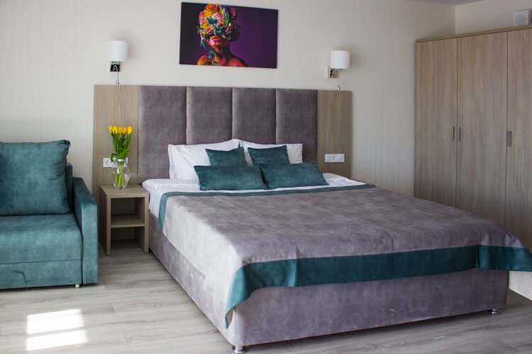 Чтобы вы могли отдохнуть после долгого дня, в номере есть телевизор. Оснащение зависит от выбранной категории номера.