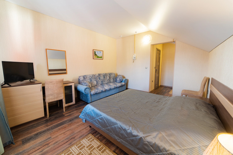 Чтобы вы могли отдохнуть после долгого дня, в номере есть телевизор. Оснащение зависит от выбранной категории номера.