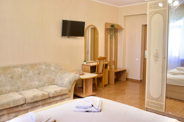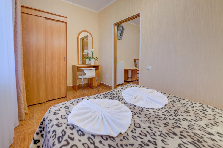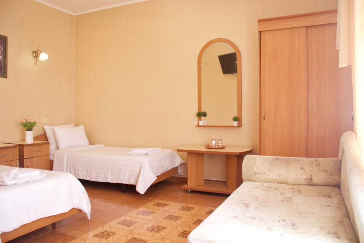 В гостевом доме 12 номеров. Есть как стандартные, так и семейные номера. Все номера с балконами, и оснащены холодильником, телевизором, кондиционером, есть санузел.