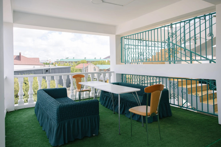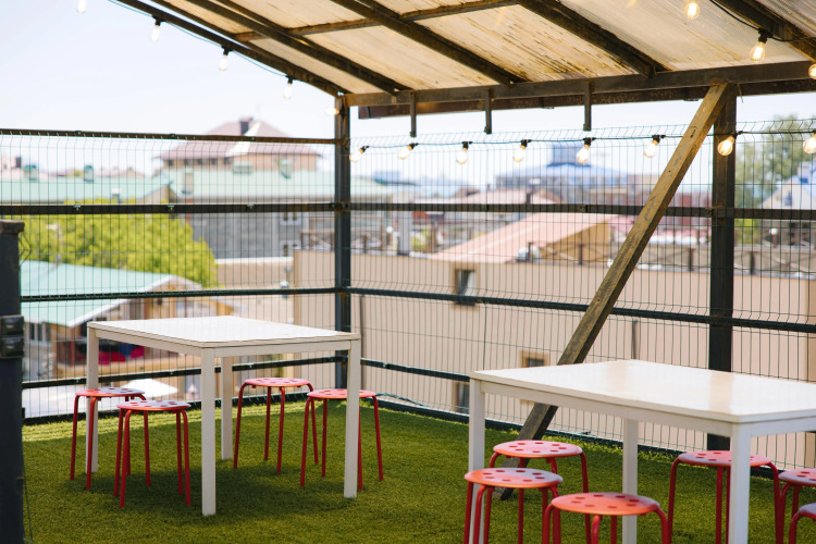 В гостевом доме работает круглосуточная стойка регистрации, кухня для самостоятельного приготовления пищи, бассейн на крыше, мангальная зона на крыше оборудована решетками, столами и стульями. Есть детский уголок.