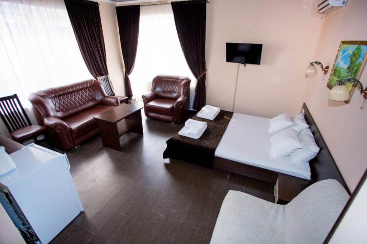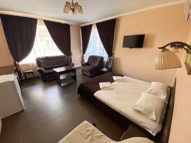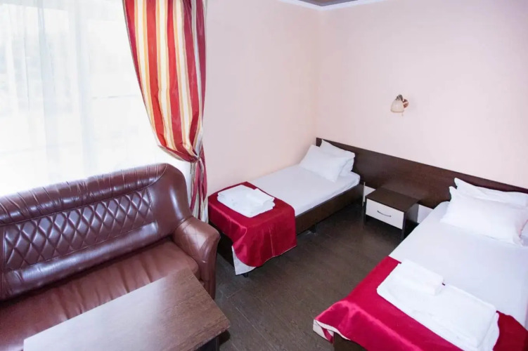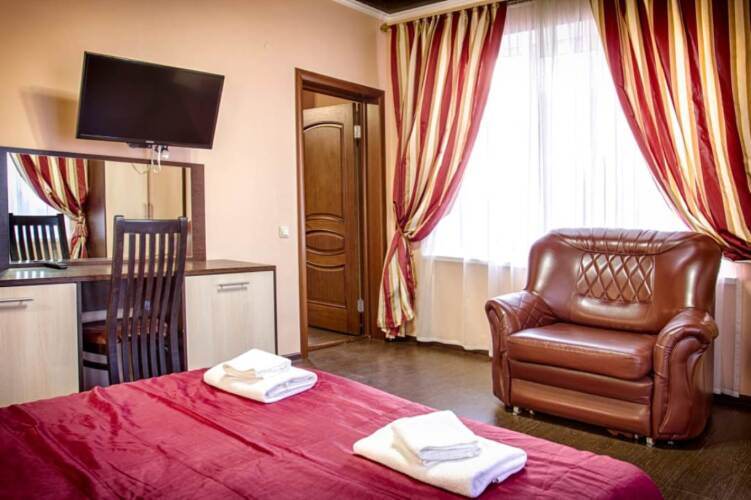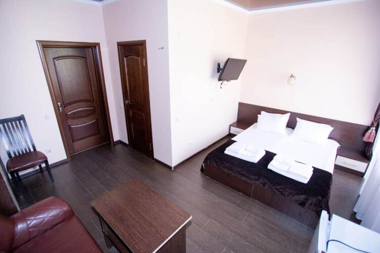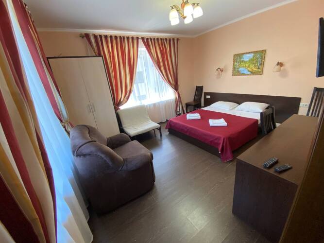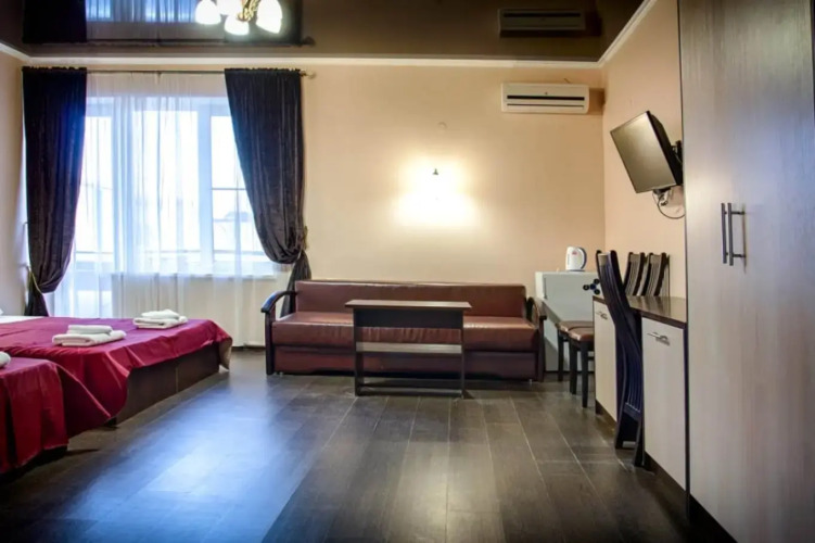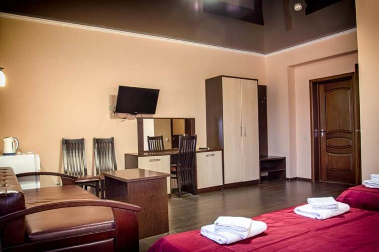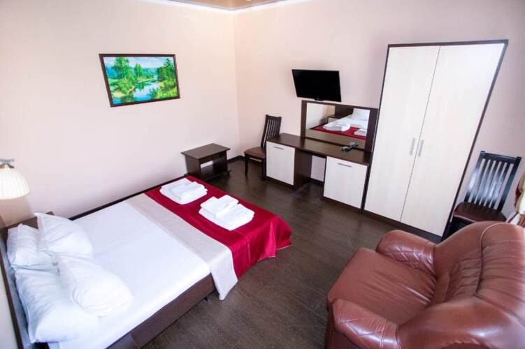 Номер уютно обставлен и оснащён необходимым, чтобы отдохнуть после долгого и насыщенного дня. Имеются телевизор. Перечисленные услуги есть не во всех номерах.