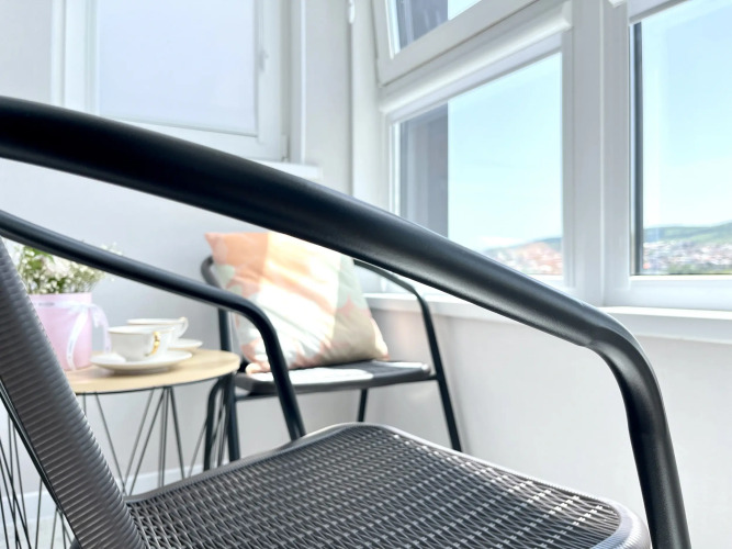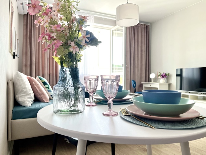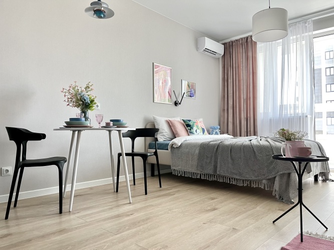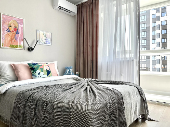 Апартаменты расположены на 6 этаже. Есть балкон.