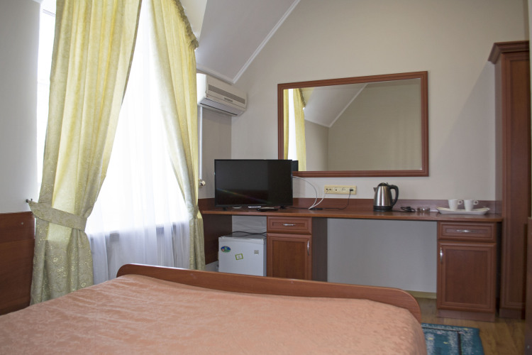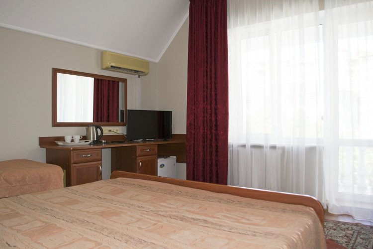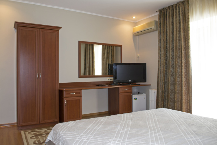 Номер уютно обставлен и оснащён необходимым, чтобы отдохнуть после долгого и насыщенного дня. Имеются телевизор. Оснащение зависит от выбранной категории номера.
