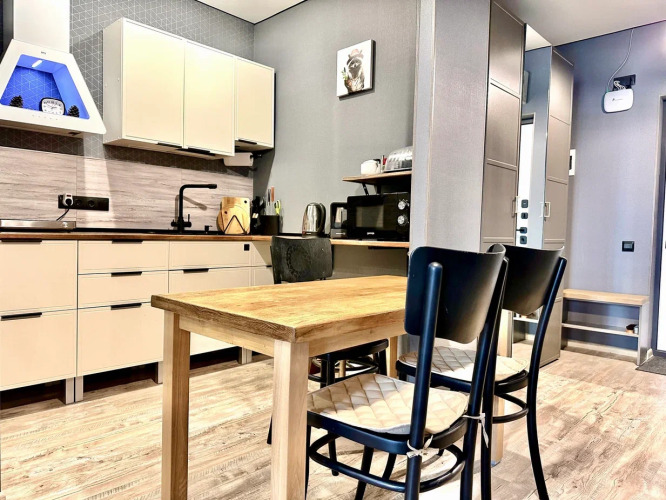 Доступная среда: работает лифт. А ещё в распоряжении гостей банкомат, индивидуальная регистрация заезда и отъезда и гладильные услуги. Персонал апартаментов говорит на русском.
