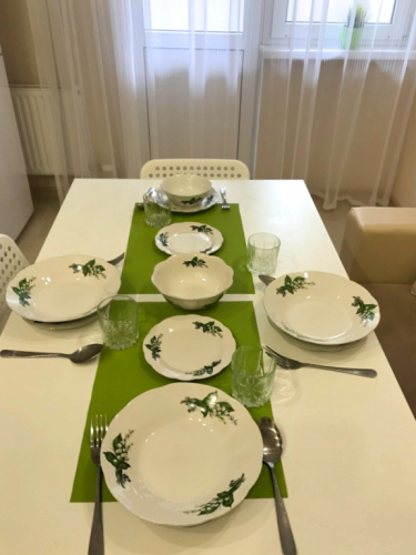 Квартира на 1-ом этаже. В апартаментах есть бесплатный Wi-Fi. Жилая комната оснащена двуспальной кроватью, удобным раздвижным диваном, набором мебели, рабочим компьютерным столом, SMART-телевизором, кондиционером.