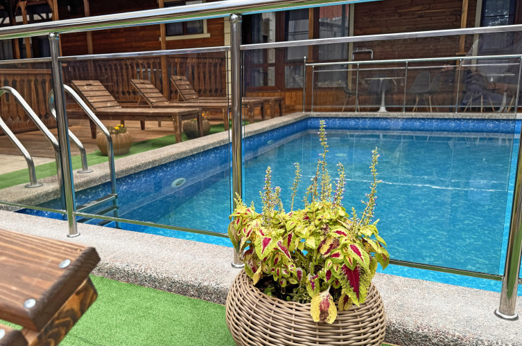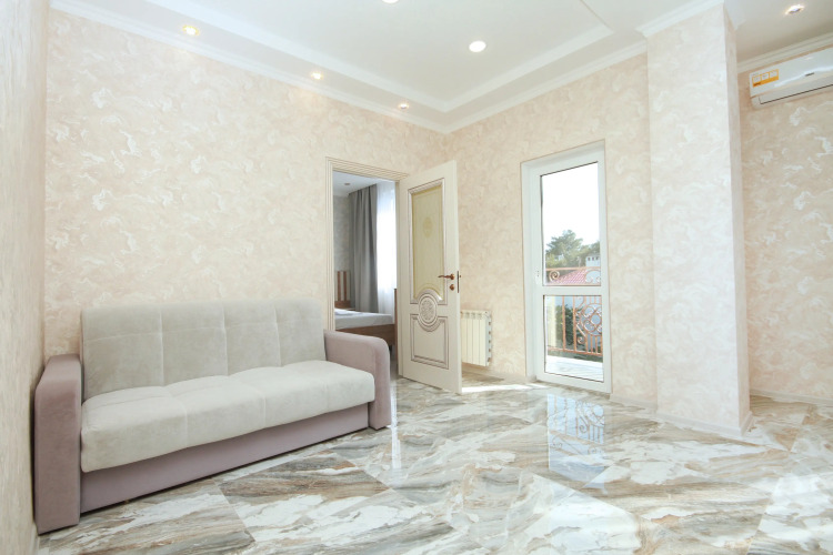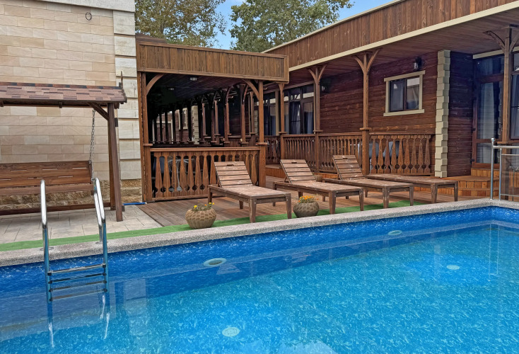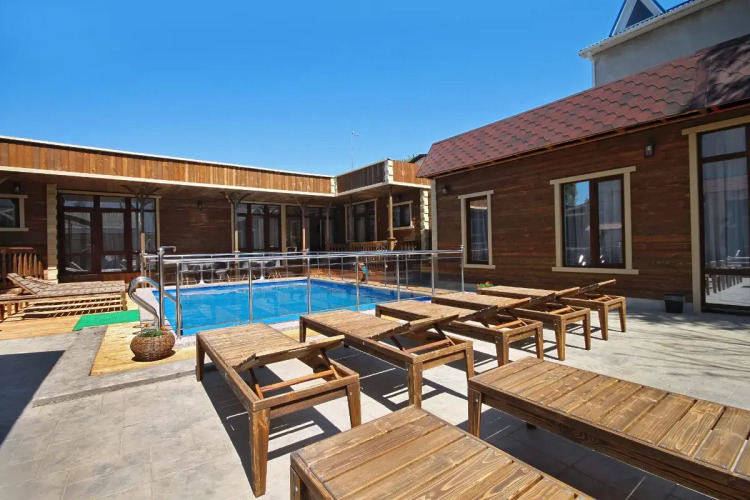 Гостевой дом — это закрытая территория, на которой находятся 3-этажное здание с 6 апартаментами квартирного типа и коттеджи с собственными террасами. Есть открытый бассейн 5,5 м на 8 м глубиной 1,6 м с зоной для загара и беседками со столиками для отдыха. Ведётся видеонаблюдение. Бесплатный Wi-Fi доступен на всей территории.